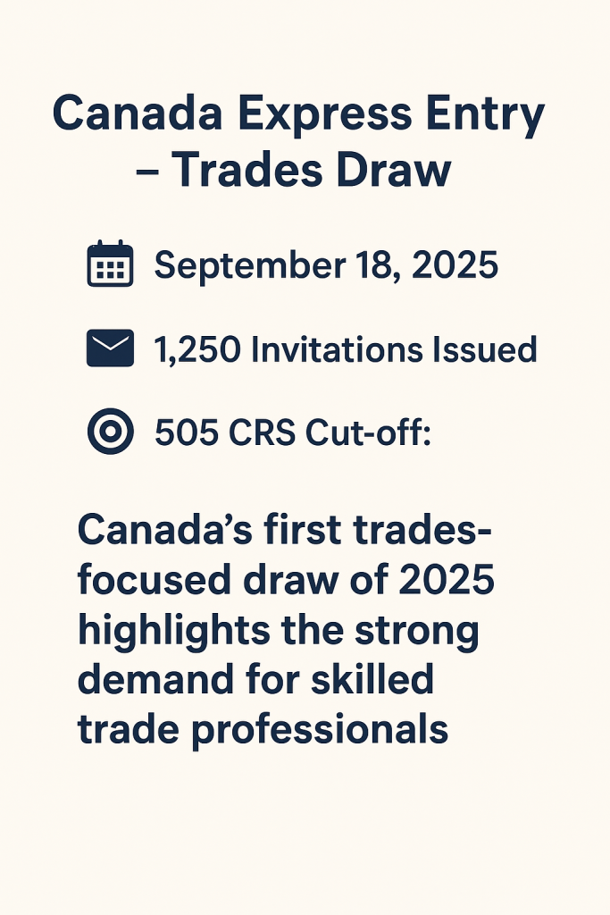 On September 18, 2025, Immigration, Refugees and Citizenship Canada (IRCC) held a category-based Express Entry draw focused on trade occupations. The results were as follows:
